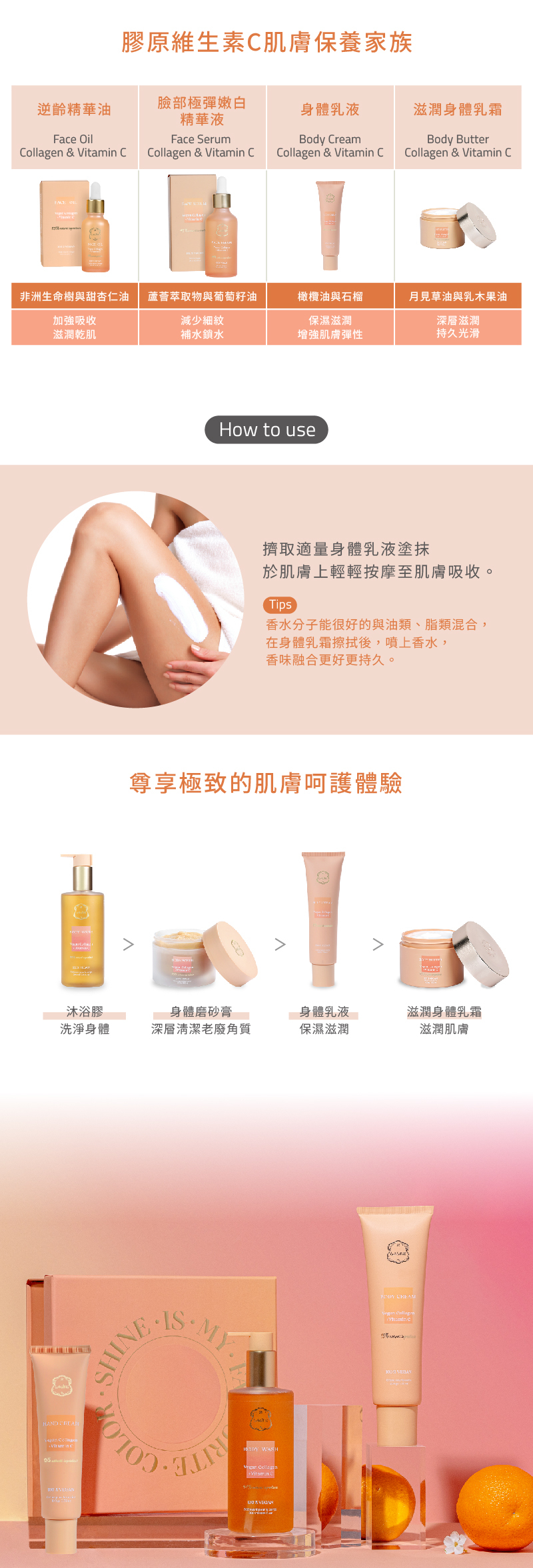 膠原蛋白+維生素 C,讓您的肌膚感覺光滑、緊緻、容光煥發