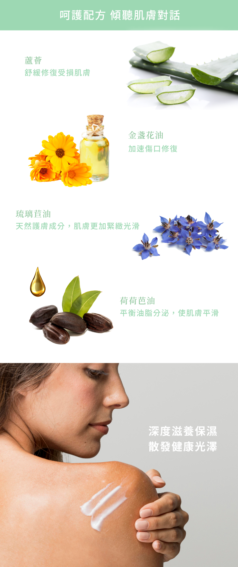 • 深層滋潤保濕,肌膚絲滑飽滿
