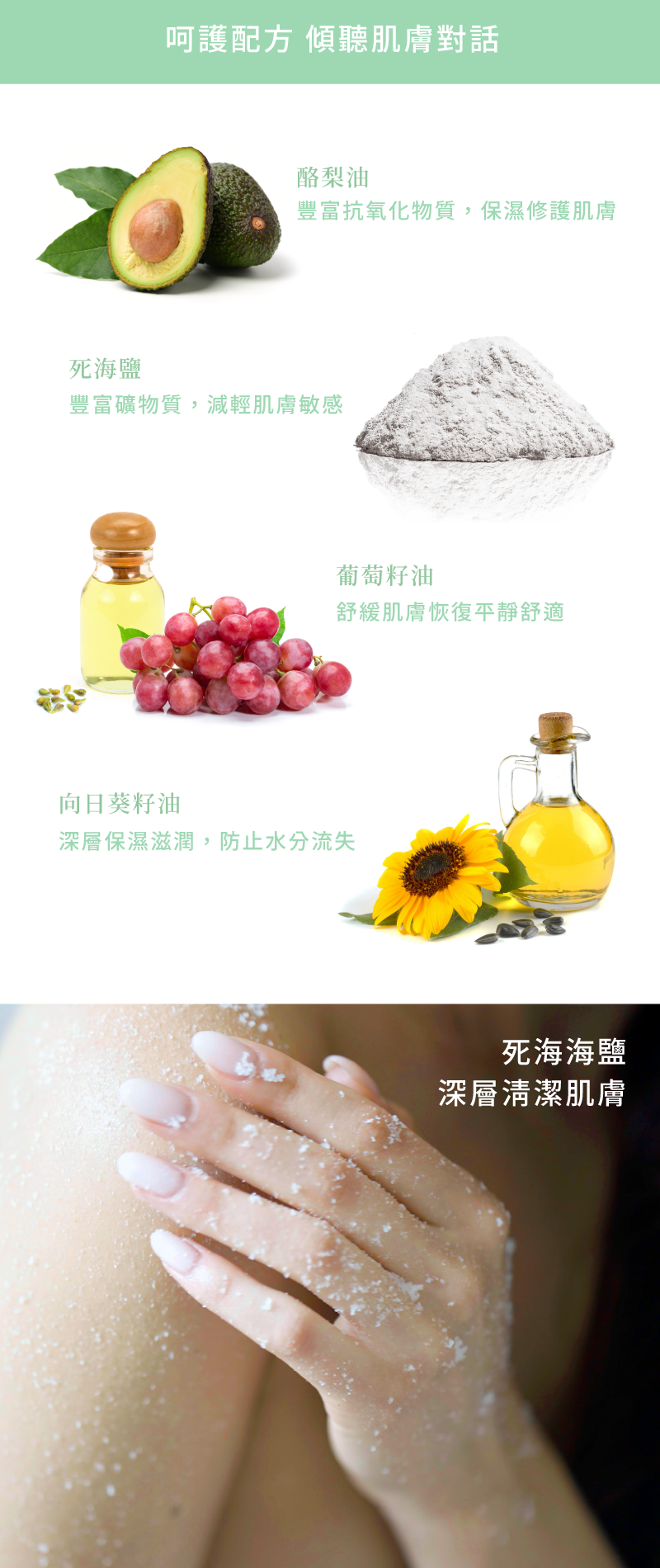 • 天然植物油,調節肌膚狀態