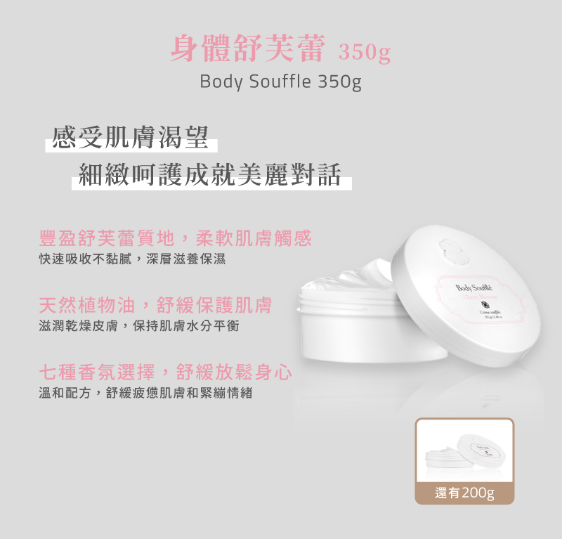 • 豐盈舒芙蕾質地,柔軟肌膚觸感