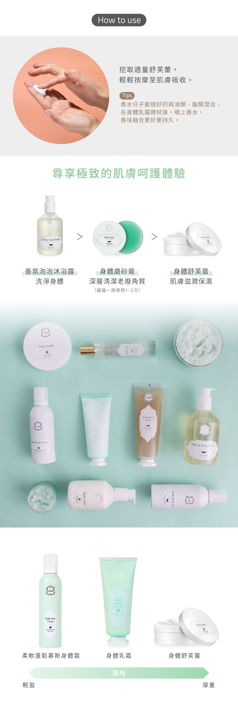 • 豐盈舒芙蕾質地,柔軟肌膚觸感