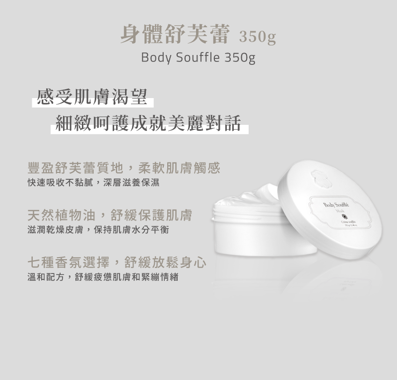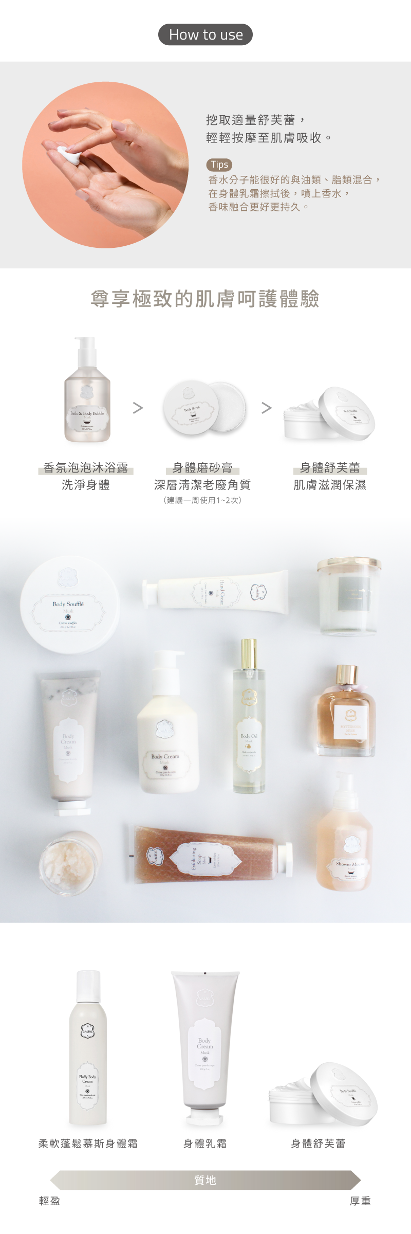 • 豐盈舒芙蕾質地,柔軟肌膚觸感
