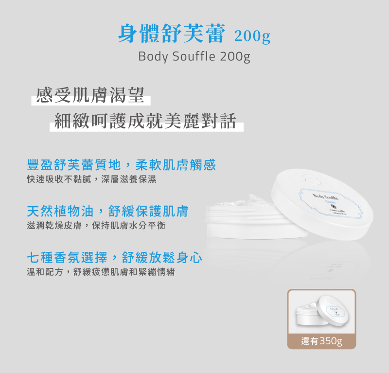 • 豐盈舒芙蕾質地,柔軟肌膚觸感
