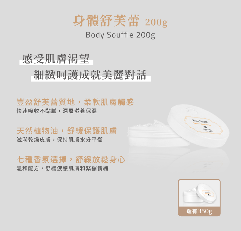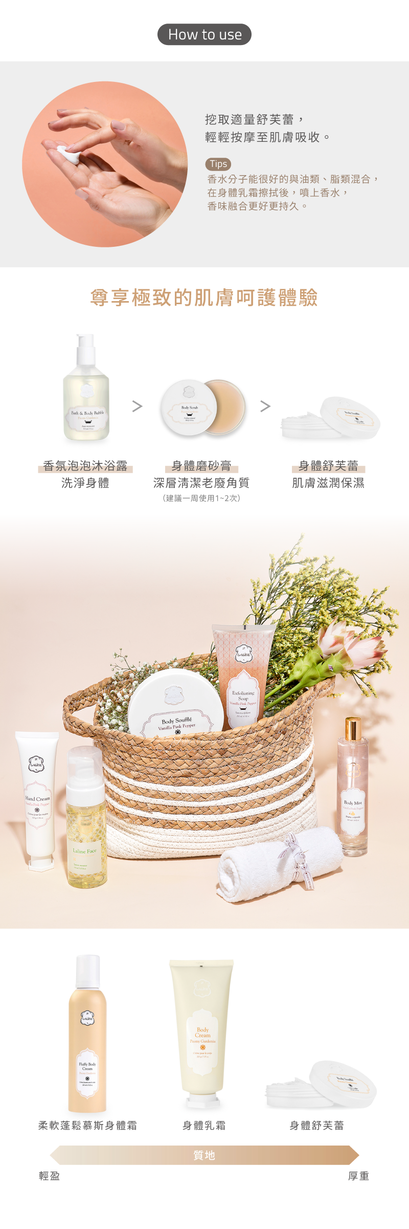 • 豐盈舒芙蕾質地,柔軟肌膚觸感