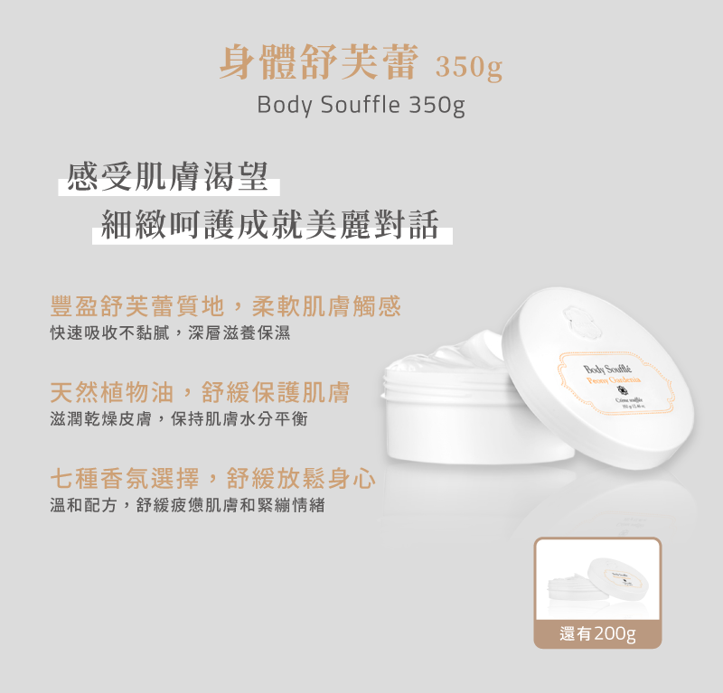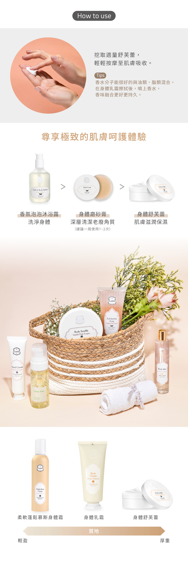 • 豐盈舒芙蕾質地,柔軟肌膚觸感