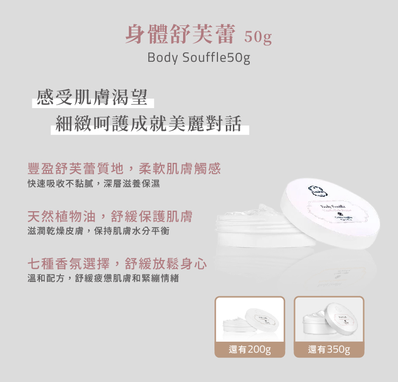 • 豐盈舒芙蕾質地,柔軟肌膚觸感
