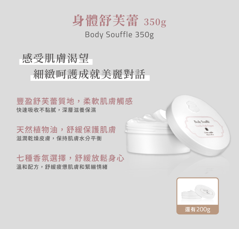 • 豐盈舒芙蕾質地,柔軟肌膚觸感