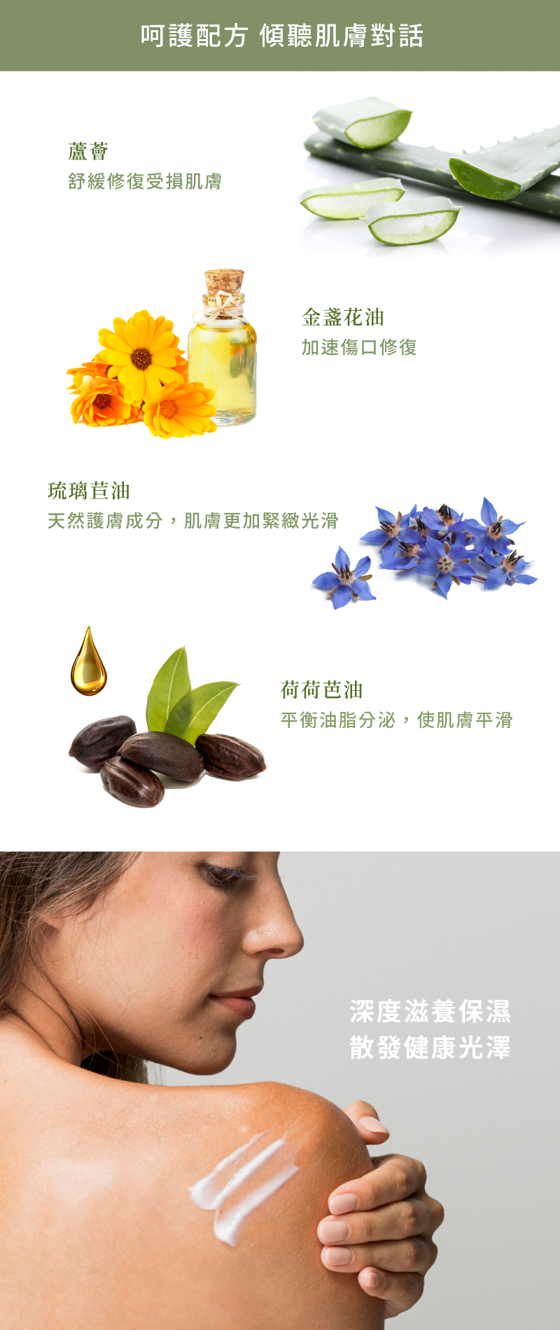 • 深層滋潤保濕,肌膚絲滑飽滿