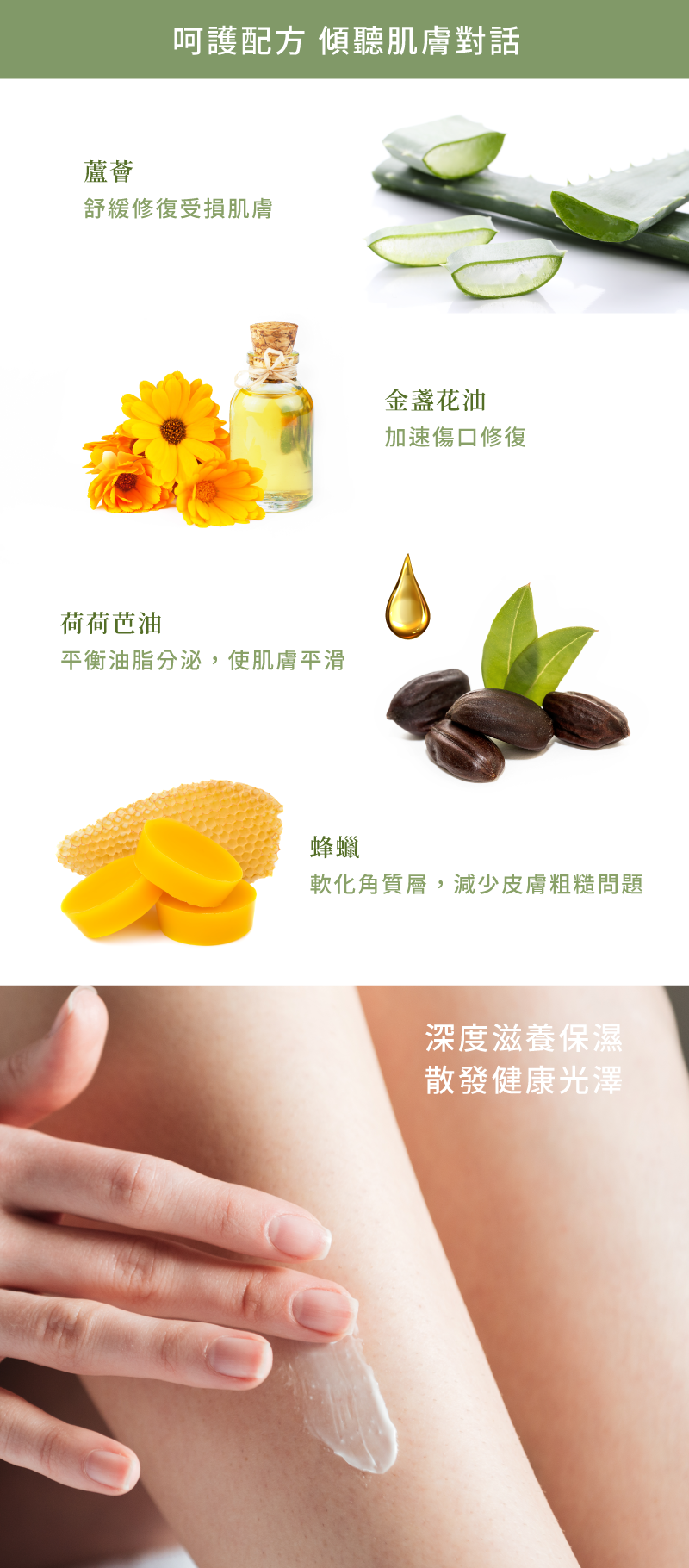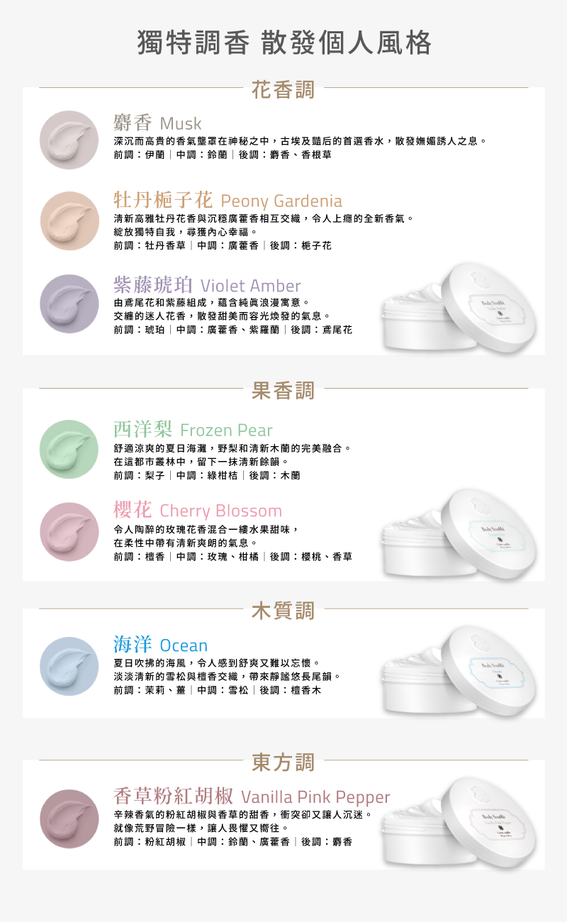 • 天然植物油,調節肌膚狀態