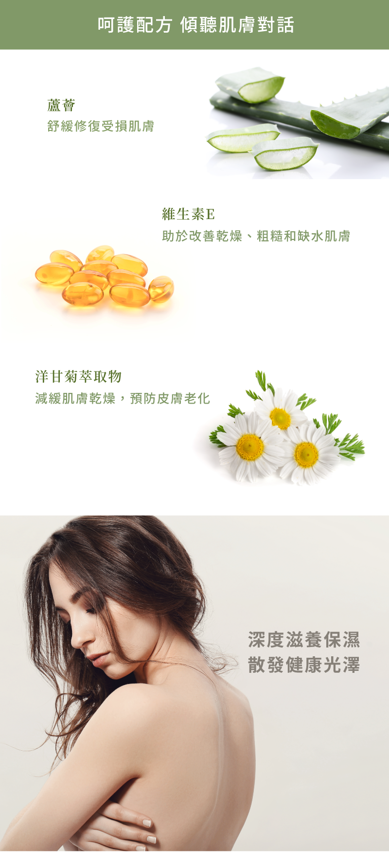 • 深層滋潤保濕,肌膚絲滑飽滿