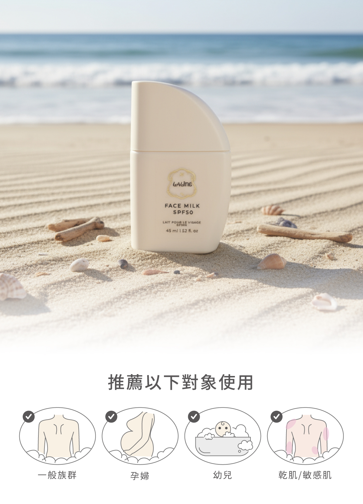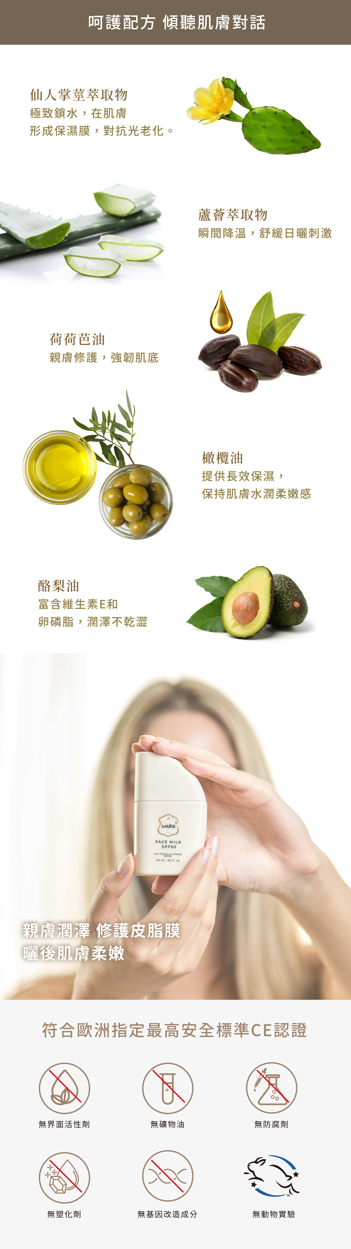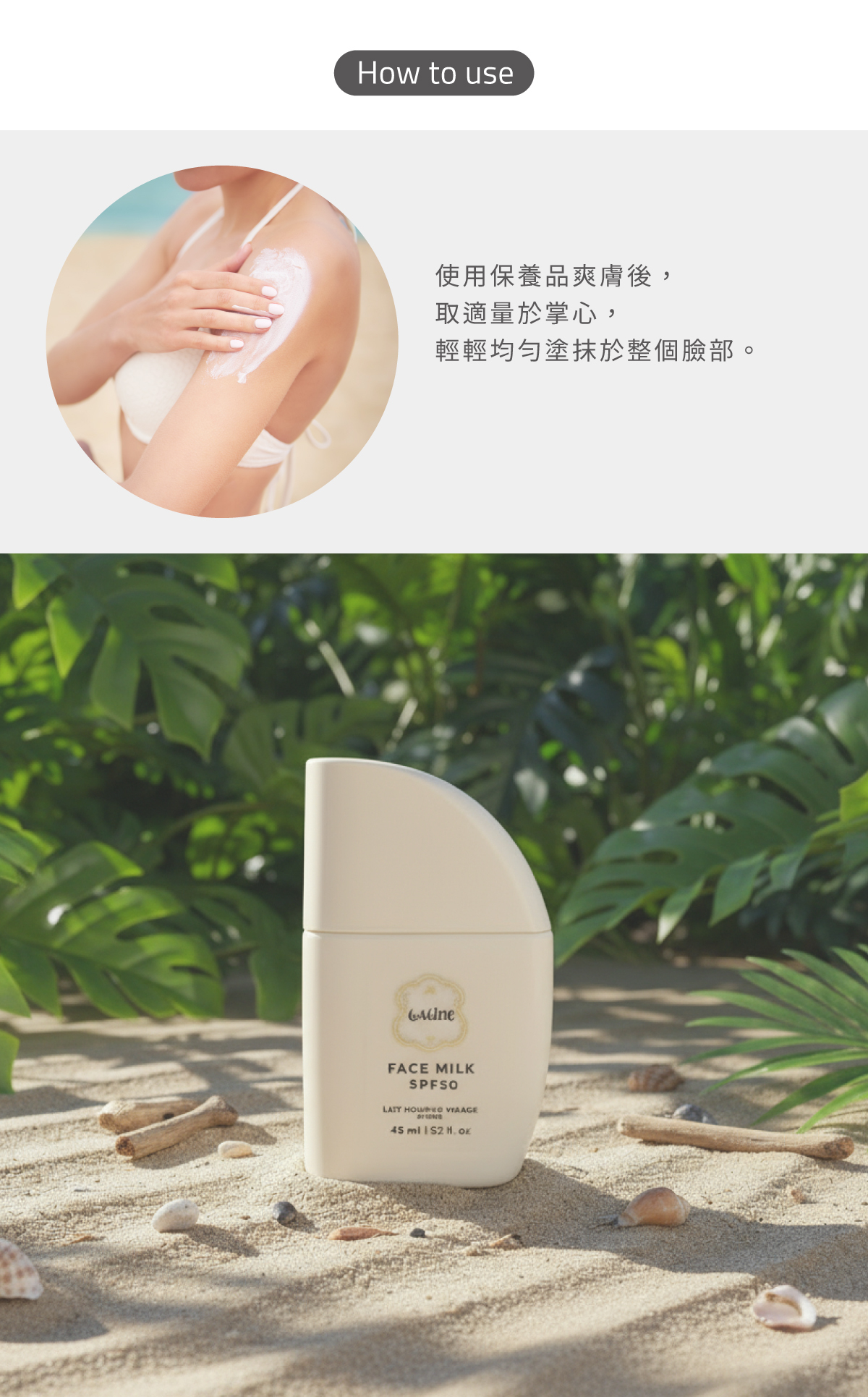 荷荷巴油:親膚潤澤,修護皮脂膜,曬後肌膚依然柔嫩。