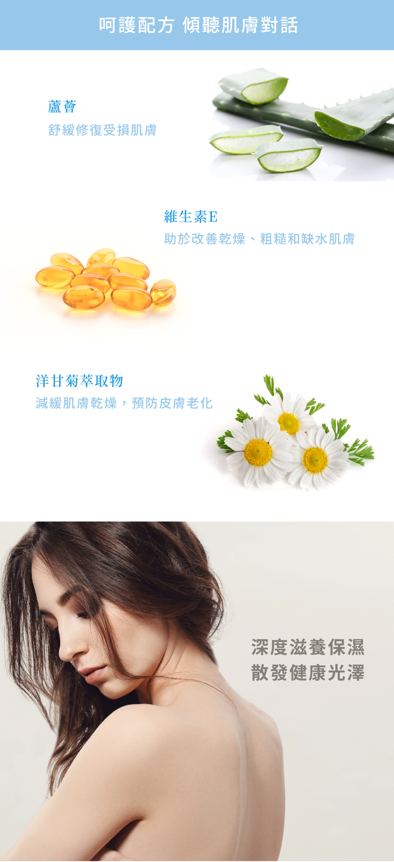 • 深層滋潤保濕,肌膚絲滑飽滿