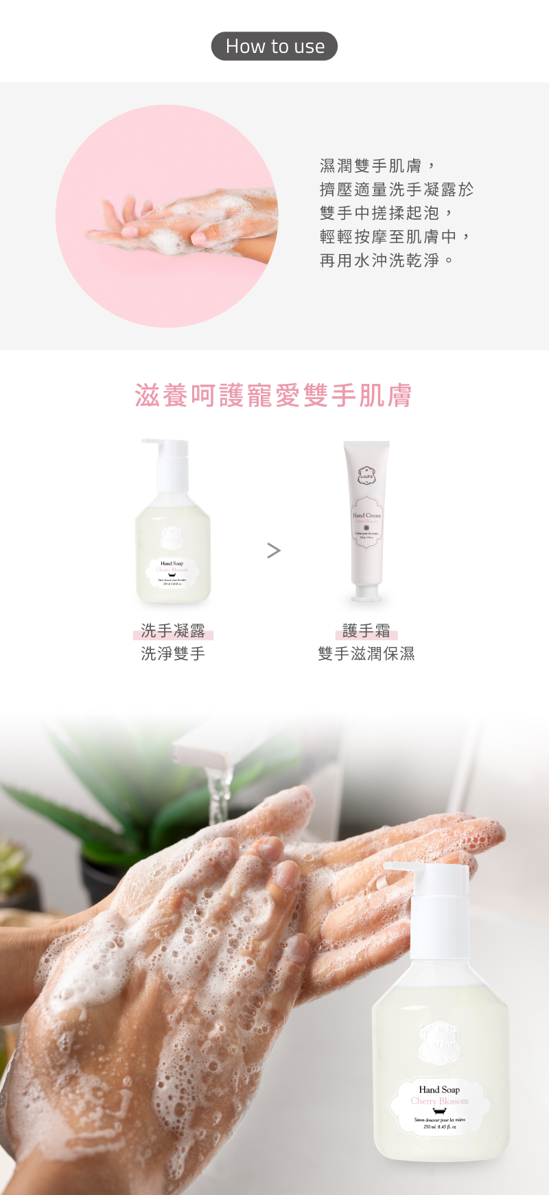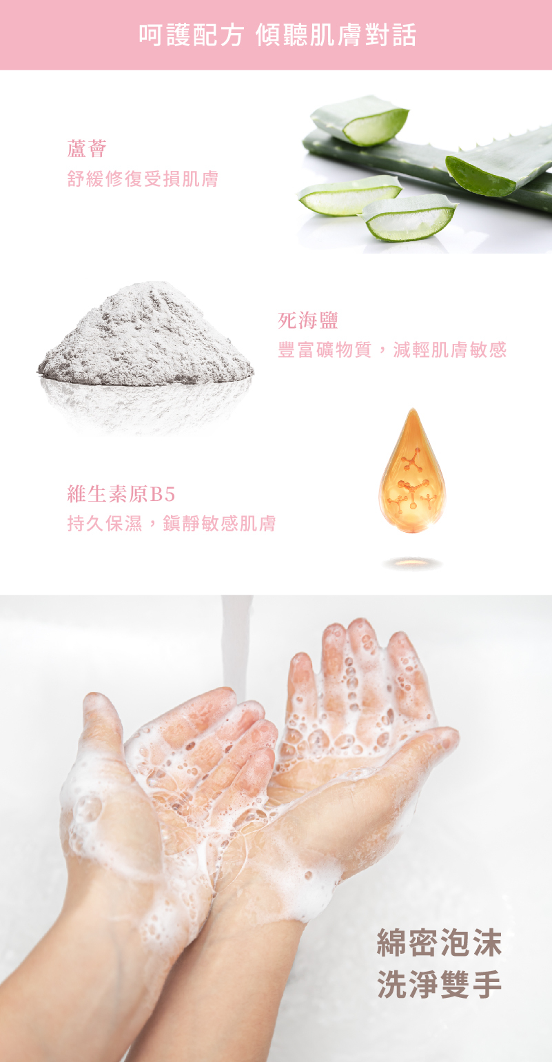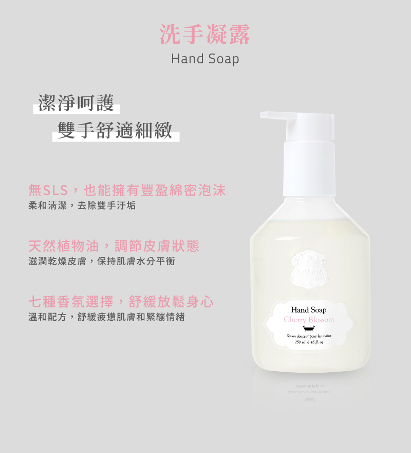 • 無SLS柔和清潔,去除雙手汙垢