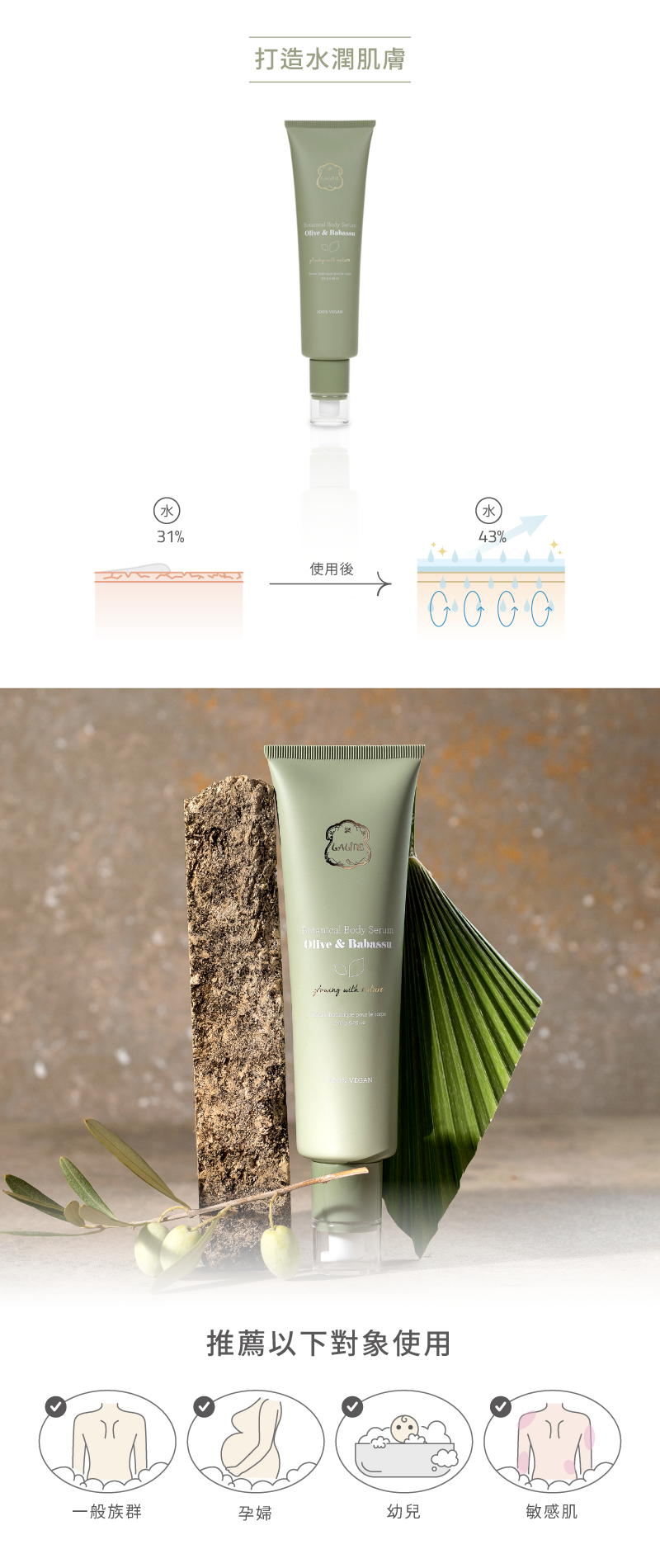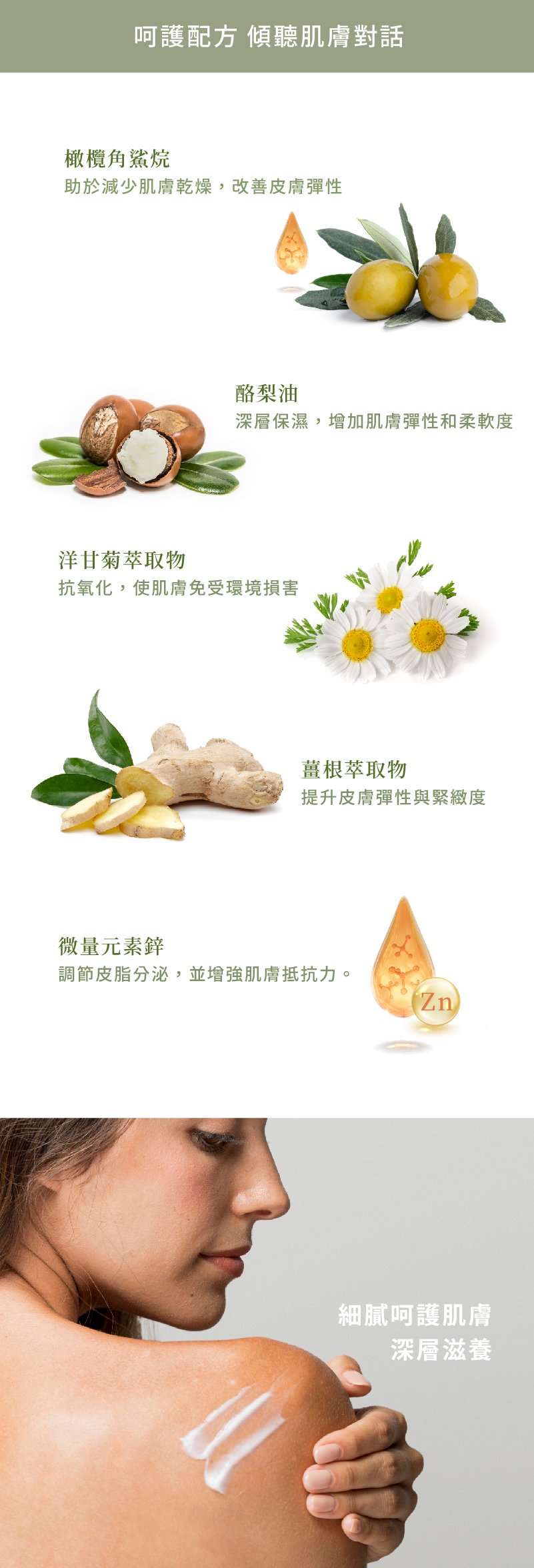 • 天然植物油,調節肌膚狀態