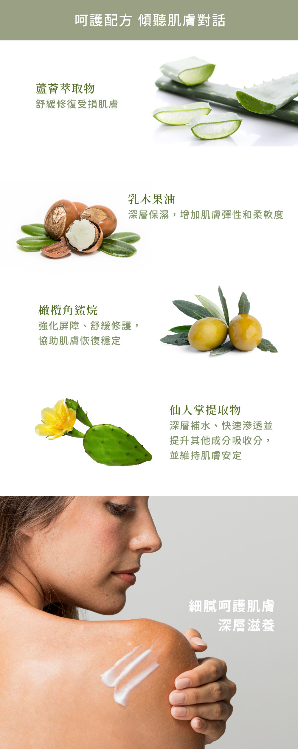• 天然植物油,調節肌膚狀態