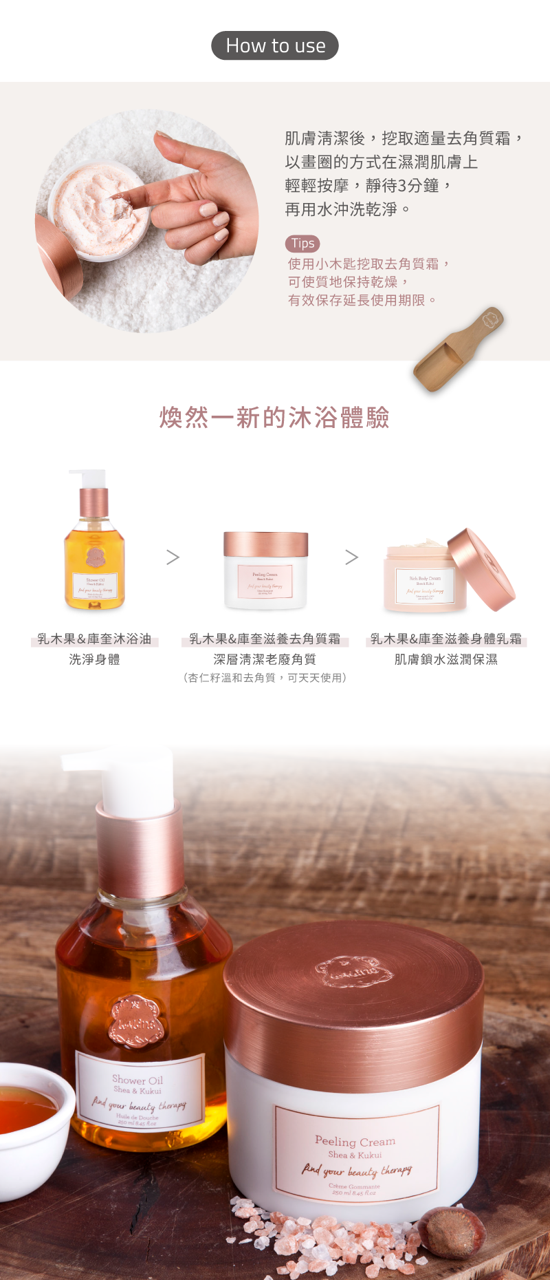 • 乳木果油深層滋潤肌膚,保持水嫩