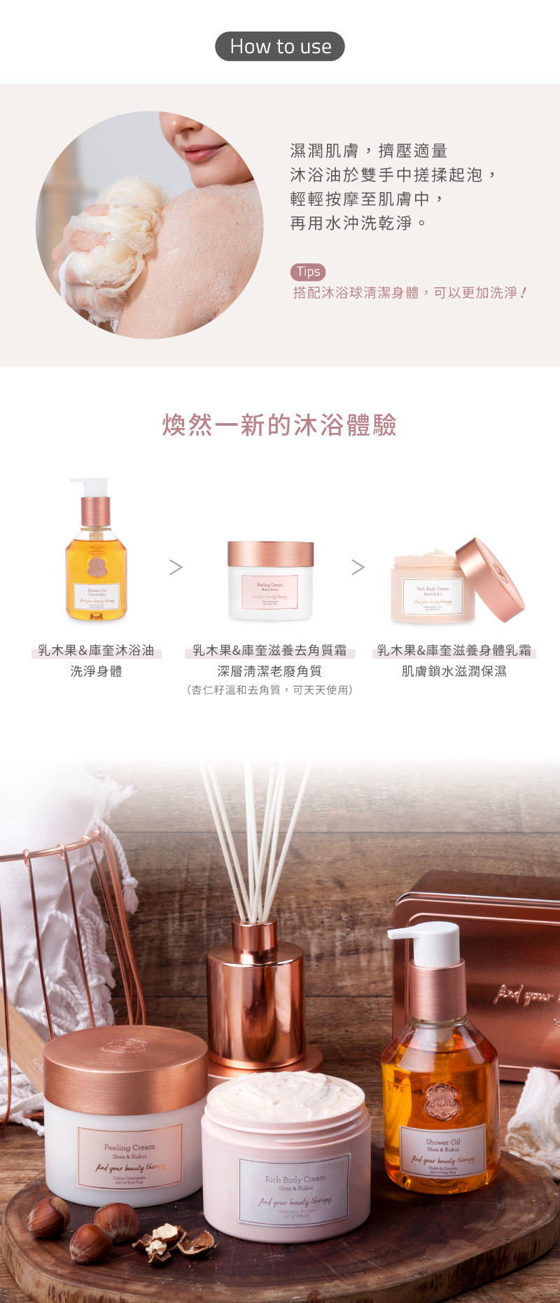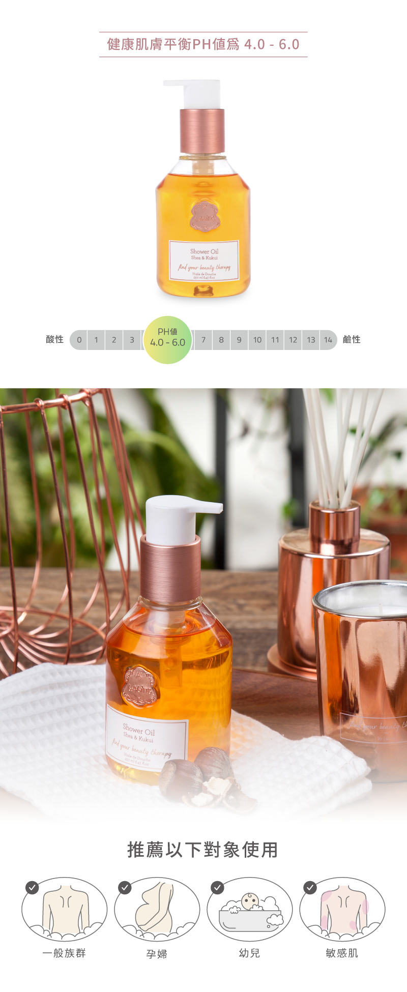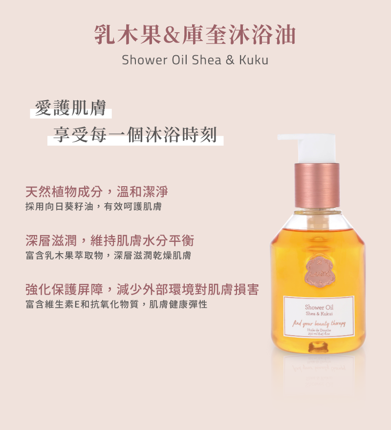 • 乳木果萃取物,深層滋潤乾燥肌膚