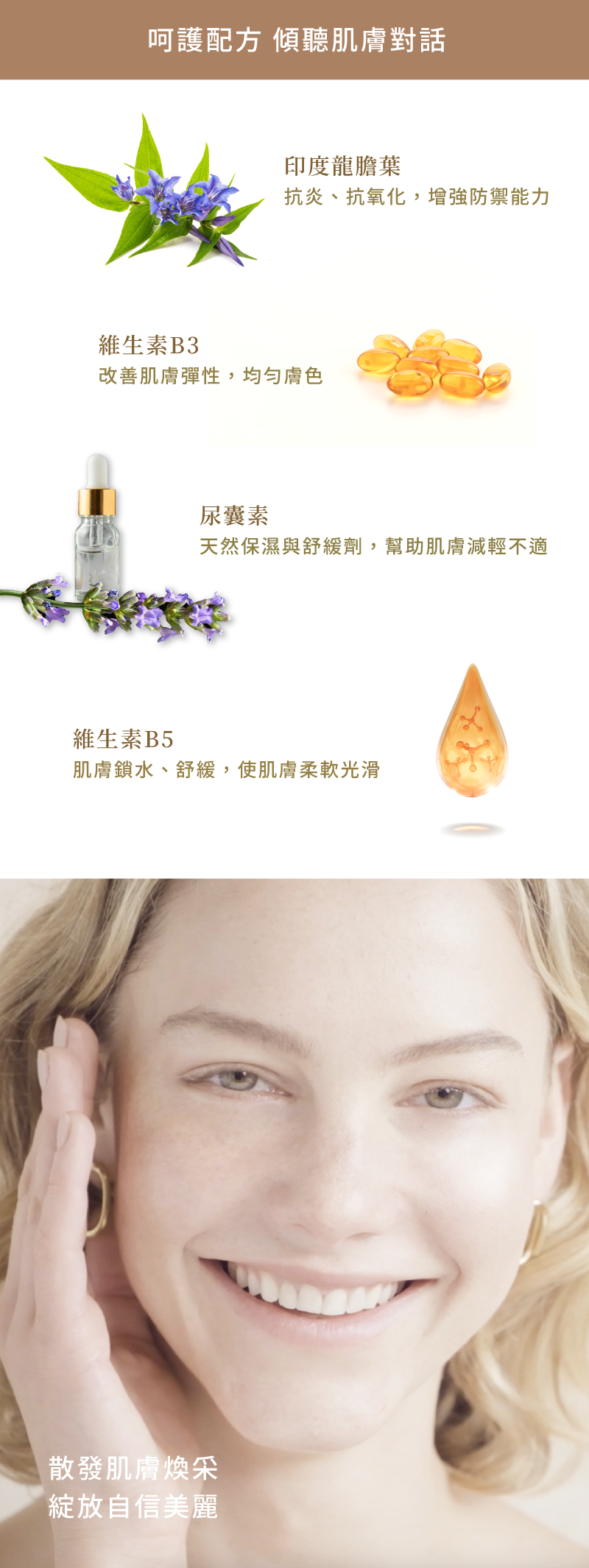 • 多種護膚成分減少細紋,提升肌膚彈性